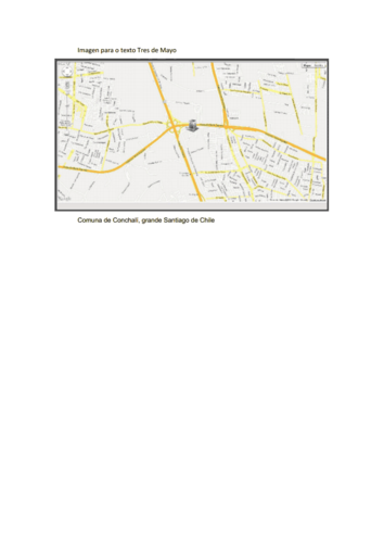 No es solamente de Tres de Mayo que yo queria escribir. Son de mis memorias de Tres de Mayo, que era una calle en la comuna de Conchalí, en Santiago de Chile. Una comuna que fue creada en la primera presidencia de la República de Chile del entonces General Carlos Ibáñez del Campo que fue dos veces presidente de Chile en períodos diferentes. Había nacido en Linares, ciudad centro sur de la República, el 3 de Noviembre de 1877 y muero en Santiago de Chile, el 28 de Abril de 1960. Su primer mandato fue entre 1927 y 1931 y el segundo, entre 1952 y 1958. Era un Presidente que desarrolló la industria, especialmente la remolacha en sus tierras de Linares, para exportar azúcar que era muy bien vendida. Junto con otras industrias, Santiago comenzó a crecer y fue necesario crear una nueva jurisdicción, que en Chile se llaman comunas, palabra derivada de la forma de de los invasores españoles que llegaron a Chile en 1535 con Diego de Almagro, que no se quedó, para recibir una nueva oleada de invasores en 1541 con Pedro de Valdivia e Inés de Suárez, que se quedaron y formaron el Reino de Chile, que en si independencia de ser colonia de la monarquía española el 18 de Septiembre de 1810, pasó a ser una República gobernadas por Presidentes elegidos para cuatro años de mandato, sin repetición en el tiempo de Ibáñez, aún cuando hoy en día pueden concurrir a un segundo mandato de otros cuatro años.