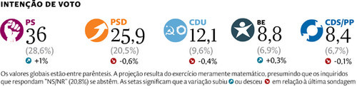 Partidos do governo sobem. PS e PC descem. Luis Moreira 11.10.13 Esta sondagem foi feita após as autárquicas. Desce o PS, o PCP e o BE . O CDS é o que cresce mais. PSD também cresce.Tags:pcpssondages link do post comentar favorito